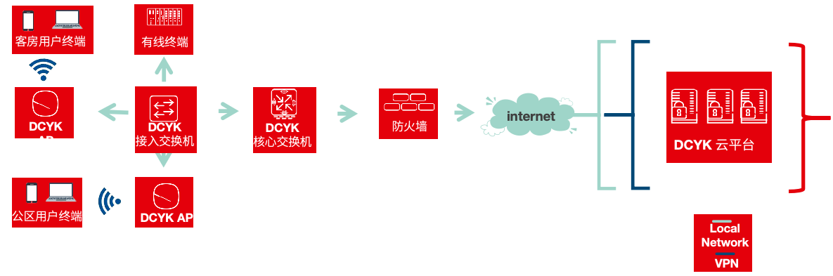 顺利获得DCYK酒店综合云管理平台,用户可以使用智能零接触配置让用户的网络在几分钟内正常运行。